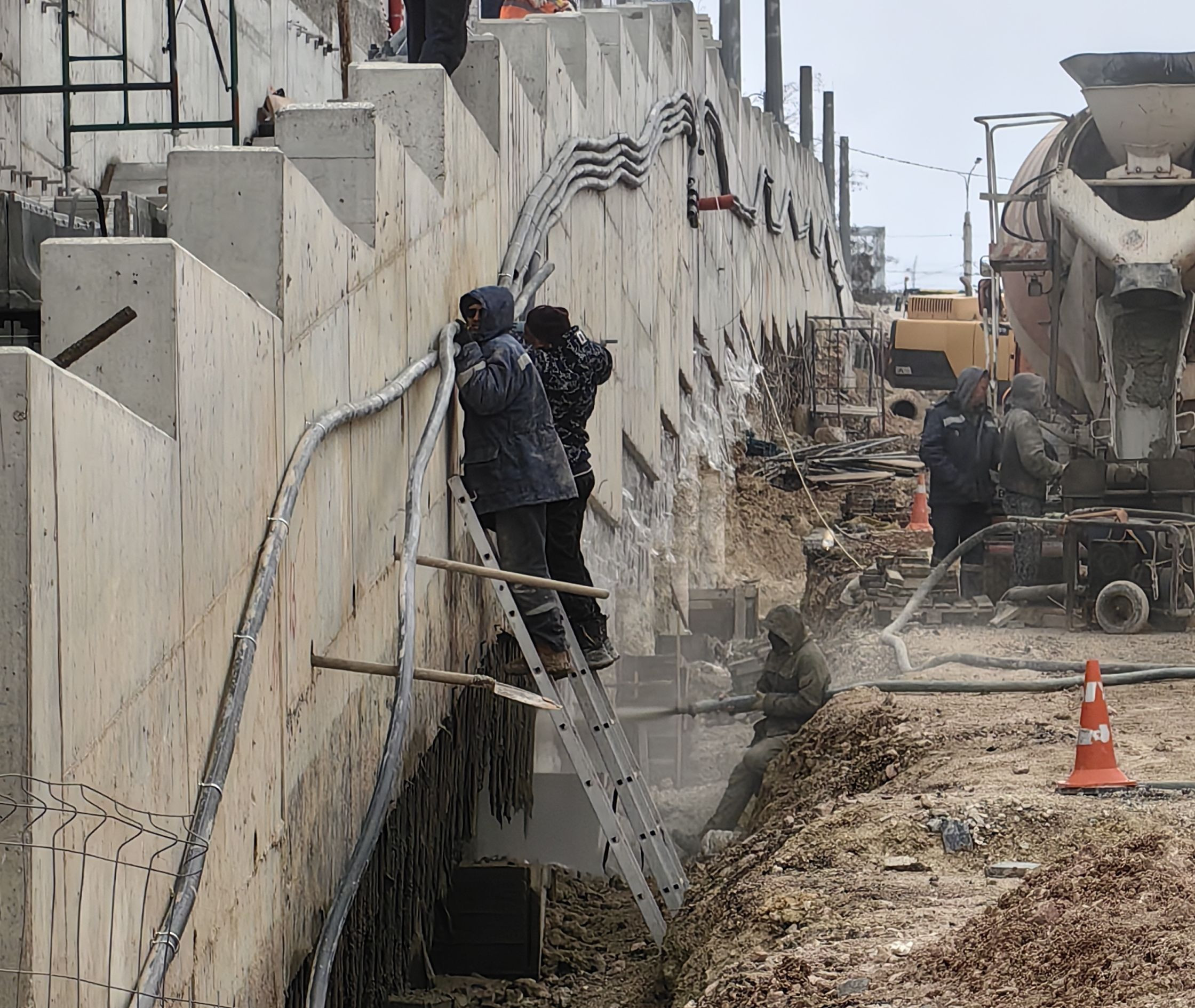 d dd Спасибо за снимок. Сейчас это "заполненное чем-то пространство между буронабивными сваями" закрывают раствором с помощью пневмонагнетателя.