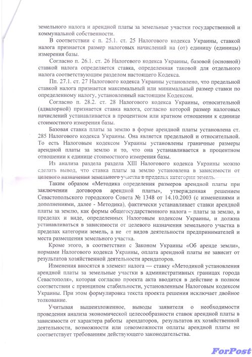 Севастопольские власти стремятся, во что бы то ни стало, повысить ставки арендной платы за землю. Соответствующий проект решения об утверждении Методики установления размеров арендной платы за земельные участки в административных границах города Севастополя депутаты горсовета планируют принять на ближайшей сессии в мае месяце. Проект регуляторного акта разработан Управлением по вопросам земельных, водных отношений и градостроительства городского Совета. В очередной раз разработчик проекта и постоянная комиссия городского Совета по вопросам бюджета, финансов, социально-экономического, инвестиционного развития города и регуляторной политики проигнорировала мои замечания и предложения в проект методики.