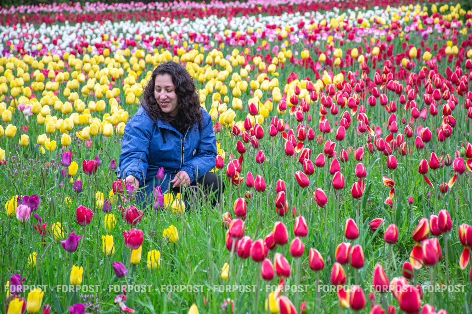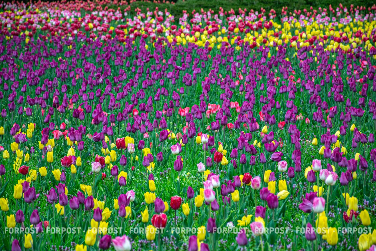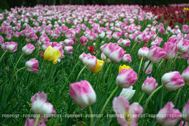 На уровне человеческого роста тюльпаны кажутся естественным весенним ковром.