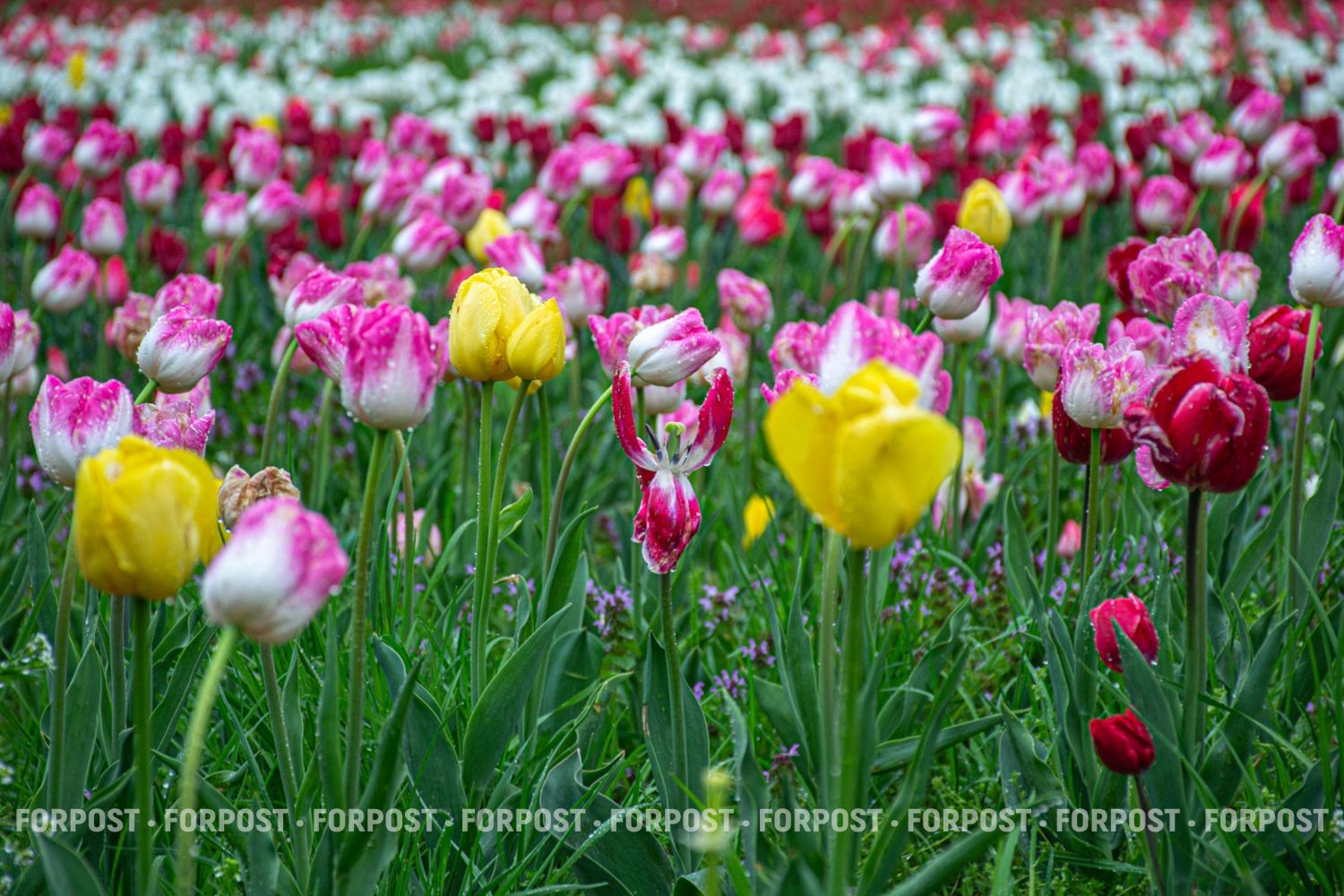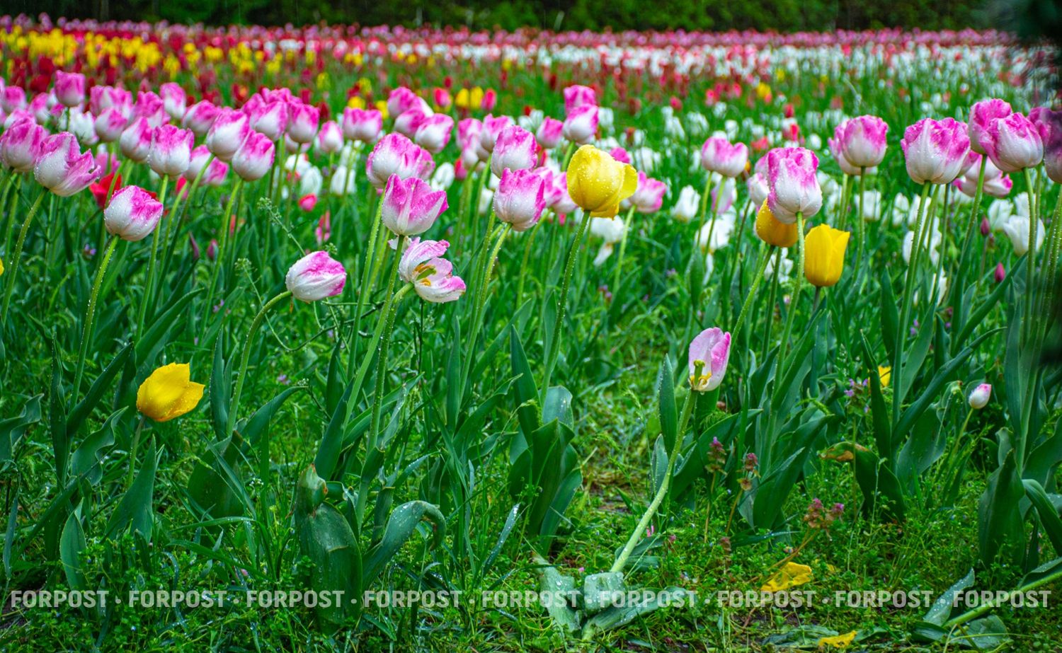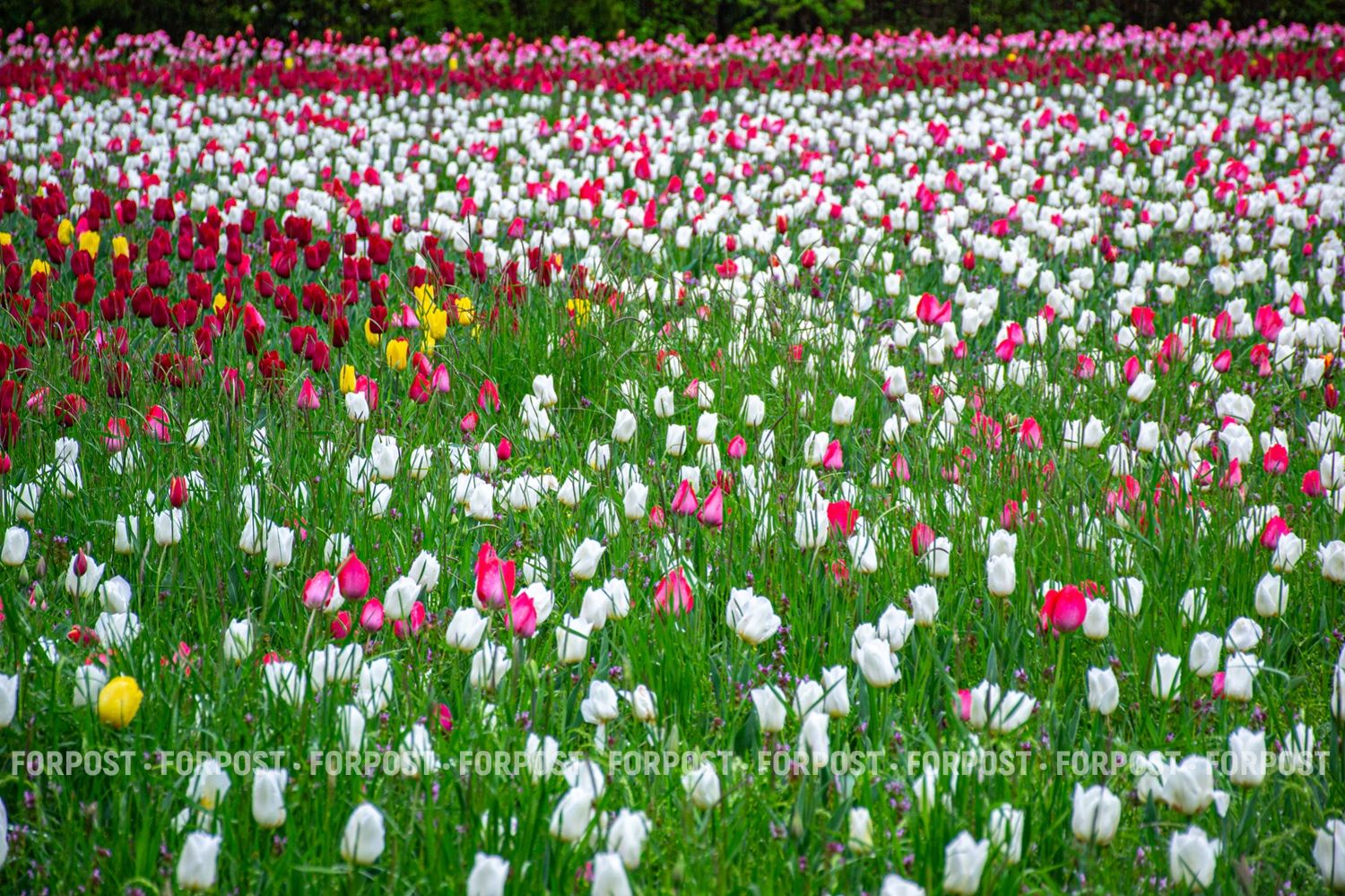 На уровне человеческого роста тюльпаны кажутся естественным весенним ковром.
