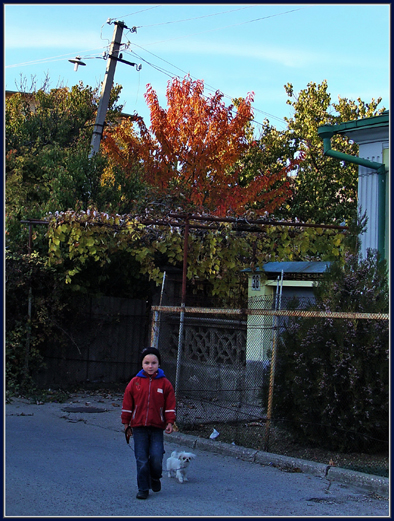 Мне казалось, что я снимаю мальчика на фоне персикового дерева в золотом осеннем одеянии. Но Вы правы: на фоне творящихся безобразий прежде всего обратишь внимание на столб. Видели бы Вы, что там ещё, за этим палисадником! Там падает не только этот столб. Там падает ВСЁ! По этому поводу мы начали обращаться КУДАСЛЕДУЕТ ещё 10 лет назад. В последний раз написали неделю назад. Ждём ответа.