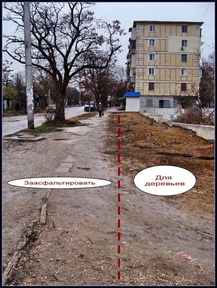 В последний раз жители микрорайона напоминали о ней нашим депутатам рай- и горсовета Чесак И. В. и Живодуеву С. А. соответственно на встрече с ними в помещении второй спортшколы 3 августа сего года. Депутаты даже соизволили пройтись с представителями первого РЭПа по небольшому отрезку улицы. То, о чём мы просили, показано на этой схеме:.jpg)