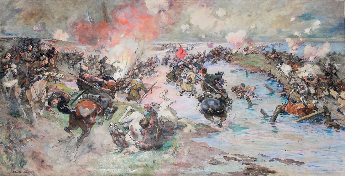 Впрочем, параллельно до войны Николай Самокиш создал несколько крупных отдельных работ, лучшим из которых художник считал «Переход Красной армии через Сиваш». В 1941 году именно за это полотно ему присудили Сталинскую премию второй степени.