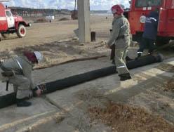 Учения были приближены к реальной обстановке. Вблизи реки пожарные установили специальную машину, которая может перекачивать до 110 литров жидкости в секунду. После проложили рукавную линию, через которую откачали воду из условно подтопленного участка на безопасное расстояние, на два километра от места происшествия.