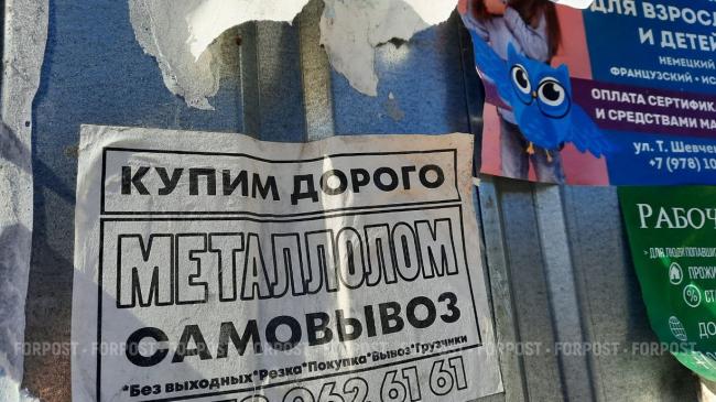 Стоит задуматься о целесообразности продолжения своего преступного промысла и тем, кто открыл нелегальные пункты приема металлолома. На этой неделе под руководством начальника Гагаринского районного отдела милиции подполковника Владимира Река проводился рейд по выявлению нелегалов. В ходе его было составлено 13 протоколов в отношении граждан, которые нелегально скупали металлолом. По сведениям начальника службы защиты имущества ОАО "Укртелеком" Игоря Судака, рейды будут проведены во всех районах города. Сотрудникам милиции было бы целесообразно наведаться на улицу Полтавскую, где уже несколько лет функционирует нелегальный "металлист".