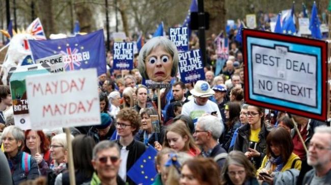 Участники демонстрации прошли с центральной улицы Парк-Лейн к парламенту, возле которого развернули транспаранты с призывом дать жителям страны еще раз высказать свое мнение по поводу выходу Британии из ЕС. «Я уверен, что, если сейчас провести ещё один референдум, то большинство проголосует за то, чтобы остаться в ЕС. То, что случилось три года назад, было большой ошибкой», — заявил один из протестующих.