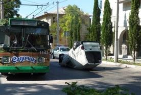 В Севастополе за день произошло две страшных аварии – трактор с вытекающим маслом и легковушка на «животе». Об этом пишет "Гражданская оборона".