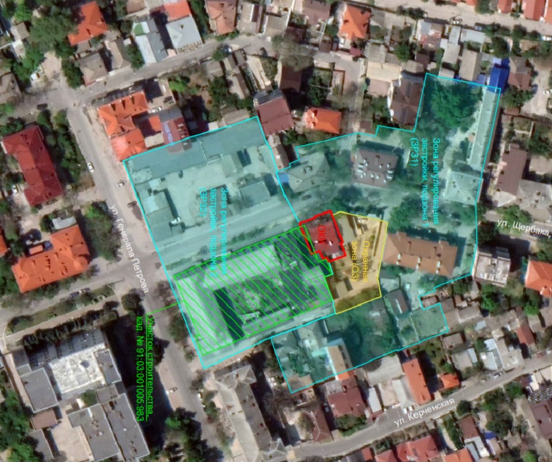 Как указывается в акте госэкспертизы, будущий новострой и ОКН находятся в границах территории исторического поселения. Но территория под будущую многоэтажку с КН 91:03:001005:983 расположена по большей части в зоне регулирования застройки и хозяйственной деятельности ОКН «Дом Косолапенко». Непосредственно в границы объекта культурного наследия попадает лишь небольшая часть участка – около 24 кв. м.