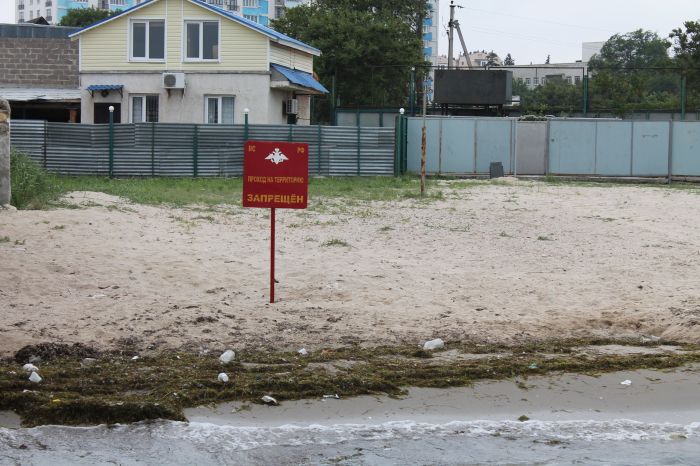Неприятным сюрпризом для нас оказалась и угрожающая табличка "Проход на территорию запрещен. ВС РФ" на пляже Нахимовского училища. Это нововведение появилось только в нынешнем году. Ранее маленькие севастопольцы с удовольствием резвились на этом мелководном пляже.