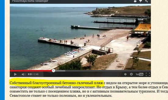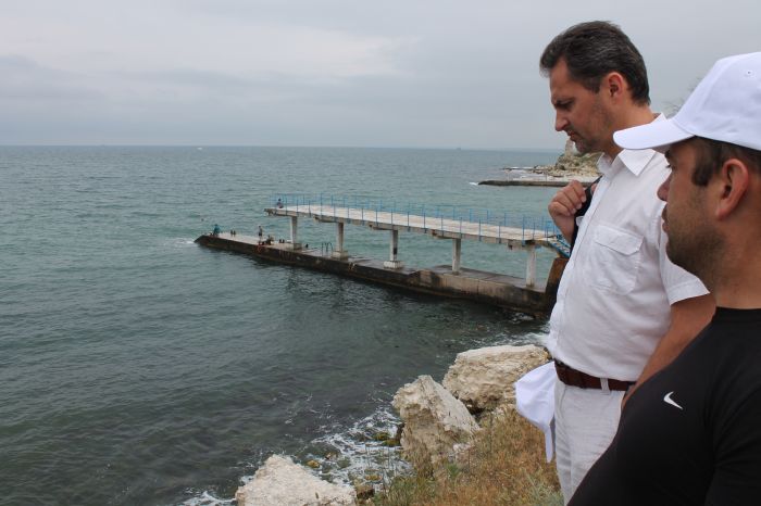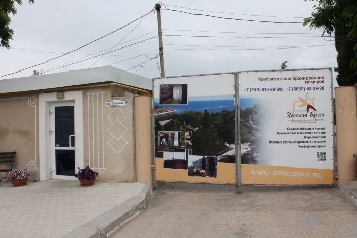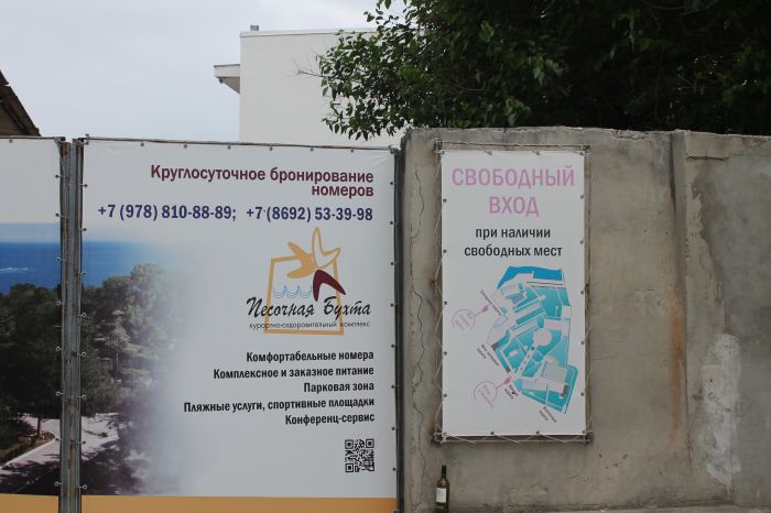 Первый же объект привел крымских гостей в недоумение. Речь идет о курортно-оздоровительном комплексе "Песочная бухта", расположенном между городскими пляжами "Песочный" и "Солнечный". Предприниматели умудрились выгородить целый пляж, не стесняясь писать об этом на официальном сайте , зазывая посетителей. ("Собственный благоустроенный бетонно-галечный пляж с видом на открытое море")