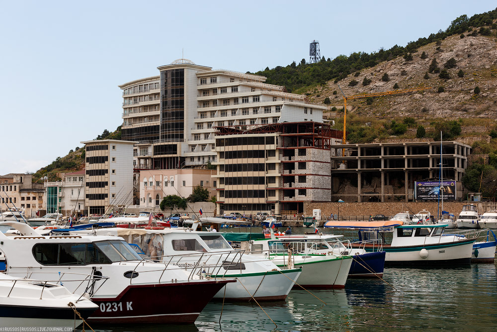 Вот его рассказ: "В Балаклаве меня удивила недостроенная штуковина около входа в музей. Раньше ее не было. Как сказали местные и у меня в комментариях позже читатели, этот шедевр архитектуры появился семь лет назад. И до сих пор не сдан госкомиссии. Причем его не смогли сдать еще насквозь продажной украинской приемке. Российская госкомиссия тоже это не принимает. Так и стоит это архитектурный высер пустой. Нарушения там стандартные. Дом построен выше, чем положено по проекту. Фундамент на такие изменения не рассчитан, хотя запас прочности там какой-то есть. Построено это все в водоохранной зоне с нарушением всех норм и т.д. И что теперь с этим делать — не понятно.