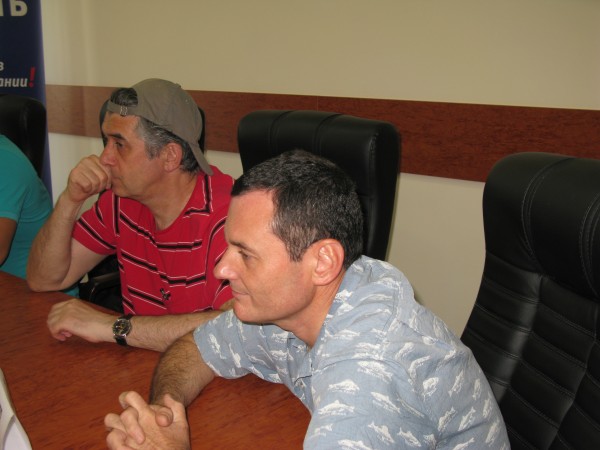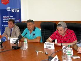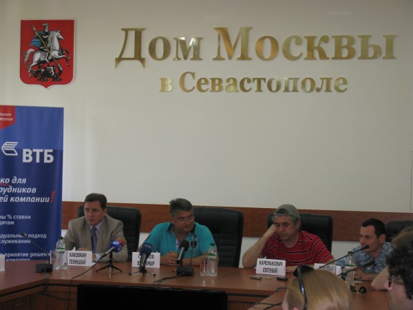Пресс-конференцию открыл генеральный директор «Дома Москвы» в Севастополе Владимир Стручков. В ней приняли участие директор Севастопольского отделения ВТБ Геннадий Каковкин, режиссер-постановщик спектакля Евгений Каменькович, служивший срочную службу на Черноморском флоте, режиссер Юрий Буторин, директор театра Андрей Воробьев и молодые актеры Мастерской – Екатерина Смирнова, Амбарцум Кабанян, Дмитрий Захаров, Дмитрий Смирнов… Они - недавние выпускники Гиттиса, которые в спектакле играют своих ровесников. Это – их дебют на театральной сцене.
