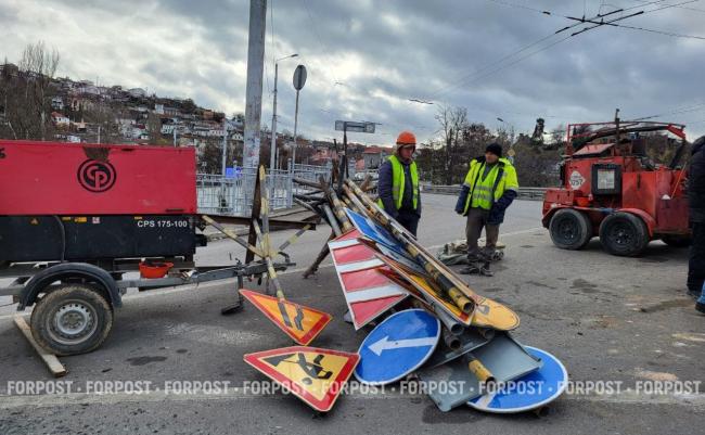 В Севастополе убрали ограждение на Днепровском мосту в районе железнодорожного вокзала, которое было введено в связи с внеплановым ремонтом деформационных швов, что привело к серьезным заторам в этом месте на этой неделе.