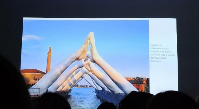 Есть, напомнила Елена Корнева, и арт-объекты, которые можно назвать носителями идей. С их помощью автор хочет поднять какую-то актуальную, по его мнению, тему. Тут в качестве примера можно привести мост из рук, который читатель видит на главном фото к этой новости. Открытый в 2019 году арт-объект под названием «наводить мосты» находится в Венеции и символизирует поиск взаимопонимания, общность человеческих ценностей, тягу к единению и согласию.