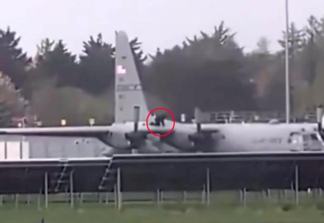 На кадрах, распространяемых в социальных сетях, видно, как человек забирается на транспортный самолет ВВС США C-130 Hercules стоимостью около $75 млн, припаркованный на удаленной рулежной дорожке, после чего начинает рубить фюзеляж и крыло топором, «нанеся значительный ущерб».