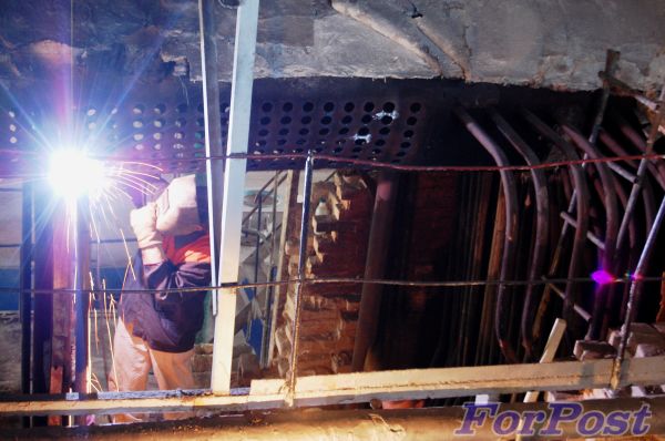 Серьезные работы ведутся и на котельной Ерошенко, 17. На двух из трех котлов выполняются работы капитального характера. На котле №3 произведена замена экранных труб, осталось восстановить перевальную стенку котла и он будет готов к работе.