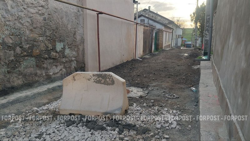Сейчас в Старом городе о стройке напоминают лишь неубранные грузовые паллеты из-под стройматериалов и обрезки пластиковых труб. Практически везде проезды узких улиц засыпаны свежим грунтом и уже утрамбованы колёсами автомобилей местных жителей.
