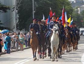 Колонна из 112 донских и кубанских казаков прибыла в наш города из Волгограда. Парадный строй растянулся по центральным улицам Севастополя почти на километр. Восторгу севастопольцев не было предела, ведь не каждый день мы можем наблюдать столько конных всадников в боевом строю. Казаки, вместе с руководством города и флота, а также с представителями духовенства возложили цветы к Вечному огню у мемориала Героическим защитникам Севастополя.
