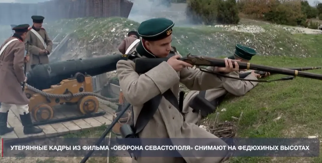 В Севастополе на площадке парка «Федюхины высоты» восстанавливают утраченные эпизоды легендарного фильма Александра Ханжонкова 1911 года «Оборона Севастополя». Сюжет об этом сняли журналисты телеканала НТС.