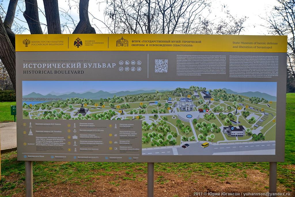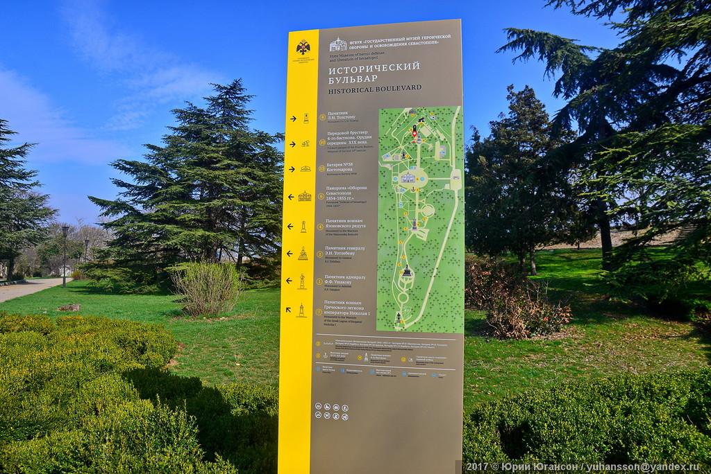 На Историческом бульваре в Севастополе теперь невозможно заблудиться: здесь размещены всевозможные стенды, указатели, информационные таблички. А ещё появилась «редкая редкость» для города — бесплатные туалеты. Репортаж о новом облике «Историка» сделал 31 марта известный севастопольский фотограф Юрий Югансон.