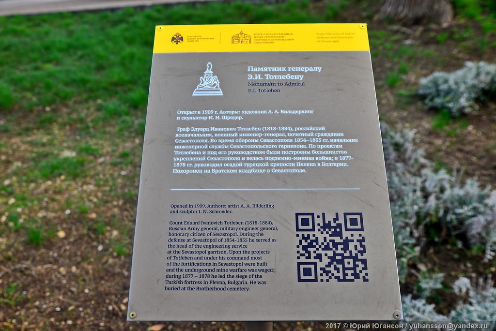 Хм... Оказывается, Э. И. Тотлебен в английской версии текста на табличке у его памятника (на последнем фото) то адмирал, то инженер-генерал...