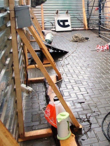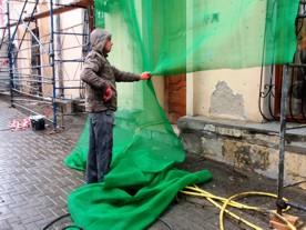 Также оставалось непонятным, от чего могла бы защитить прохожих лишь местами натянутая крупноячеистая строительная сетка, если за ней начались работы ... водяной струёй под давлением!