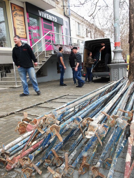 22 марта возле перекрёстка улиц Адмирала Октябрьской и Большой Морской разгрузили строительные леса.