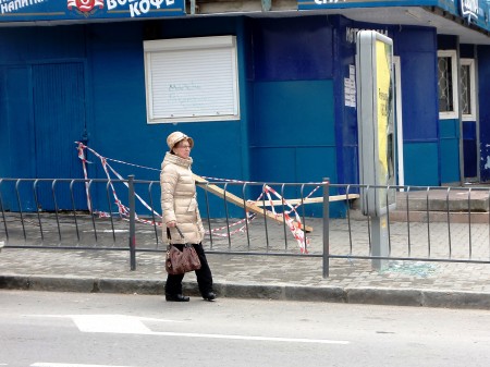 В понедельник ремонт начался. Судя по тому, как разворачивали «фронт работ», никаких планов организации строительства не составляли. Просто взяли и перегородили широкий тротуар яркими лентами-аншлагами. Прохожие узнавали о закрытом сквозном проходе лишь после того, как поднимались в горку от перекрёстка с улицей Очаковцев до запрещающего «самопального» кордона. Установить предупреждающие таблички никто не удосужился! Однако, преодолев подъем, не каждый пешеход соглашался вернуться и проделать такой же путь повторно, но по противоположной стороне улицы.