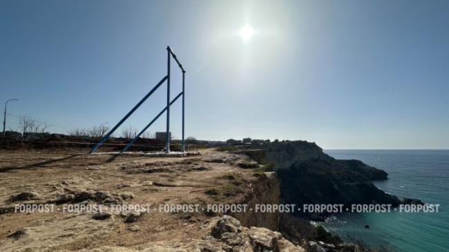 На одном из обрывов мыса Фиолент в Севастополе появилась массивная металлическая конструкция с качелями. Кто и на каком основании её установил — пока неизвестно.