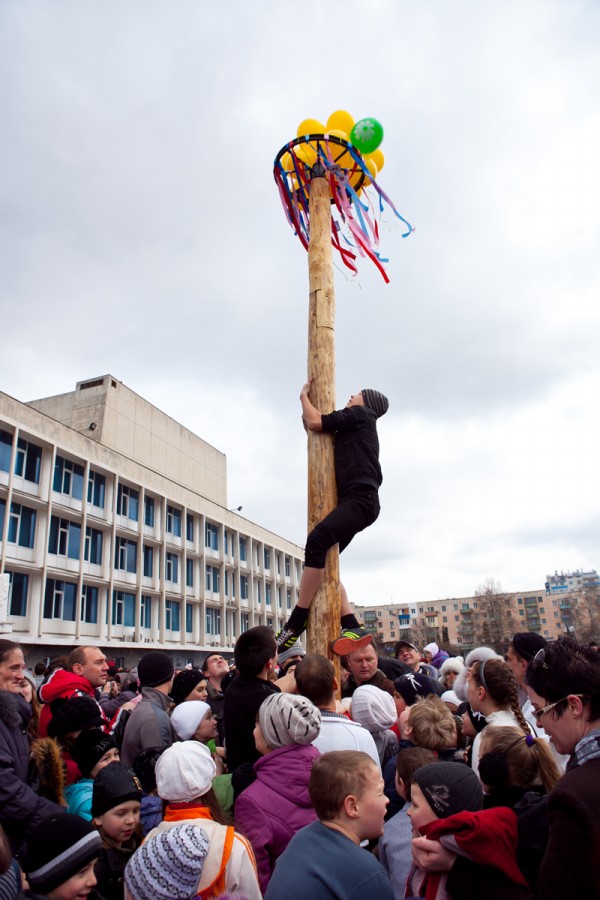 Кульминацией развлекательной программы стало яркое солнышко, выпущенное в небо и старинная народная забава – «Потешный столб». Зрители с удовольствием наблюдали, как самые ловкие горожане взбирались на ярмарочный столб. В награду смельчакам достались: пылесос, кофеварка, микроволновая печь, фирменный кухонный набор и другие ценные подарки, предоставленные Гагаринской районной государственной администрацией и севастопольским отделением Партии регионов.
