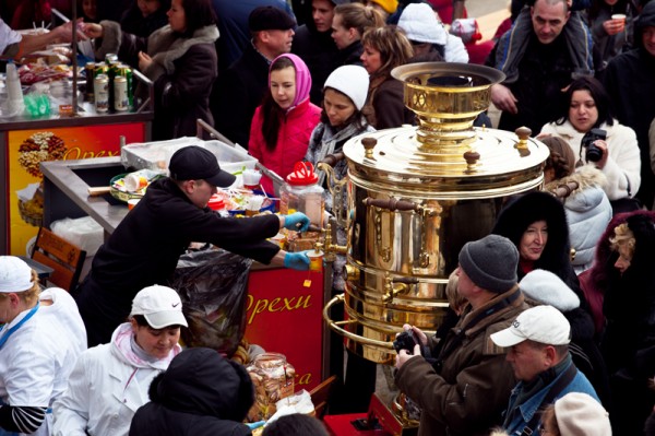 Гостей праздника угощали блинами, приготовленными на открытом огне да ароматным чаем из 200-литрового самовара.