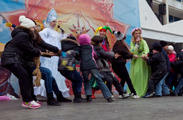 Дети и взрослые вместе водили веселые хороводы со скоморохами, красавицей Весной и суровой Зимой, участвовали в увлекательных конкурсах. Мужчины пытались выиграть приз в конкурсе на лучший комплимент теще.