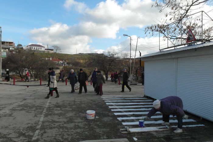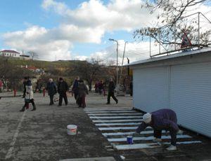 Сегодня на её территории убрано уже три нестационарных торговых объекта (НТО), а работники морпорта по трафарету старательно наносят «зебру».