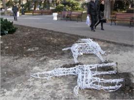 В Севастополе на аллее у театра им.Луначарского к Новому году установили шесть светящихся скульптур оленей и медвежат. Сначала их повалил на землю сильный ветер, а потом сломали хулиганы, сообщает Севастопольская газета