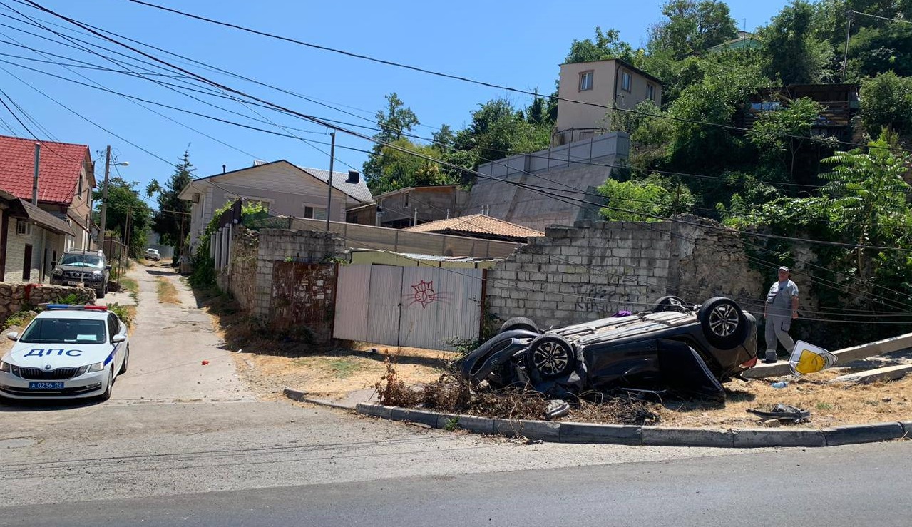 На спуске Котовского в Ленинском районе Севастополя перевернулся автомобиль. Кувырок вниз по склону остановил фонарный столб, который переломился от удара машины, словно спичка. Подробности ДТП сообщили в пресс-службе УМВД.