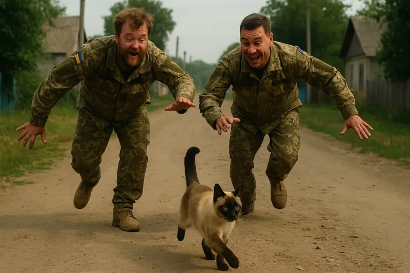 По украинским пабликам массово разошлось видео, на котором видно, как военные забирают кота с улицы и убегают с ним на машине. Практически сразу выяснилось, что инцидент случился в одном из киевских сёл, а кот был домашний.