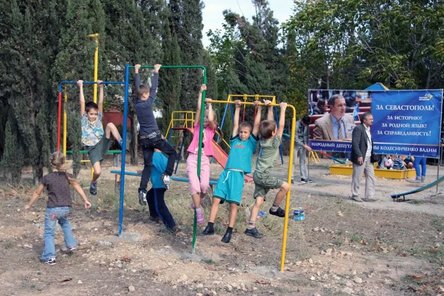 Да-а. Такого стыда я бы не перенес. Кому не лень - съездите посмотрите на эту площадку вблизи. Сделана примитивно, песочница из необструганных досок, занозы детишкам обеспечены. Обратили внимание: на горке никого. Потому, что поверхность как мелкая наждачка, кожу содрать элементарно (выход - только нержавейка). Да и установлена площадка на необработанном месте. Нет, это не нардеп, это позор Севастополя.