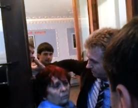 По мере того, как в холл техникума «просачивались» «правильные» посетители, «неправильным» людям на крыльце сообщались всё новые и новые версии встречи. Из сбора партактива Партии Регионов она была срочно при помощи вывешенного на дверях объявления переформатирована в отчёт депутата Ленинского районного совета Елены Богомоловой. Но и тогда один из общественников, проживающий по адресу улица Гоголя, 7, не смог на неё «проникнуть».