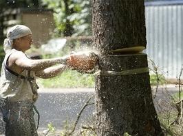 Реально - пилят ветки у придорожных деревьев.