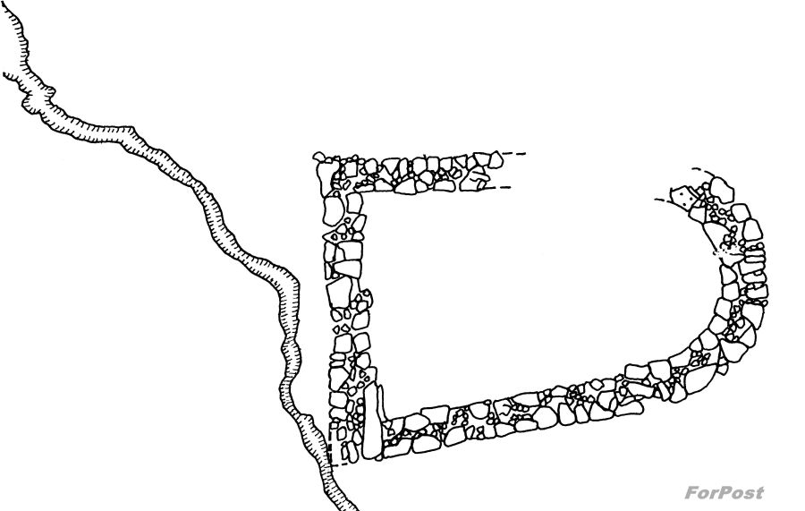 В первую очередь это трапециевидная в плане форма, эллипсовидная апсида без заплечий, значительно заглубленный относительно дневной поверхности пол (почти на полметра), в связи с чем в храм вели четыре ступени. Пол храма был глинобитный, без вымостки, субструкции или специальной подсыпки под ним не было; внутренняя поверхность стен была оштукатурена, но следов настенных росписей не выявлено. Обращает на себя внимание примитивная строительная техника. Стены, стоявшие без фундамента непосредственно на полу, были построены "насухо", без перевязи и соблюдения порядовки из разнокалиберного бута; крупные обработанные камни были положены только в южном и западном углах. Исходя из этого, а также учитывая отсутствие в каменном завале клинчатых камней, был сделан вывод, что апсида не имела конхи, и перекрывалась, скорее всего, четвертью шатра по деревянным наклонным стропилам, опирающимся на основной коньковый прогон. Видимо, конхиальное перекрытие оказалось слишком сложным для строителей храма. О примитивности строительной техники также свидетельствуют различная толщина стен (от 0,5 до 0,8 м) и несимметричное решение углов юго-западной стены.