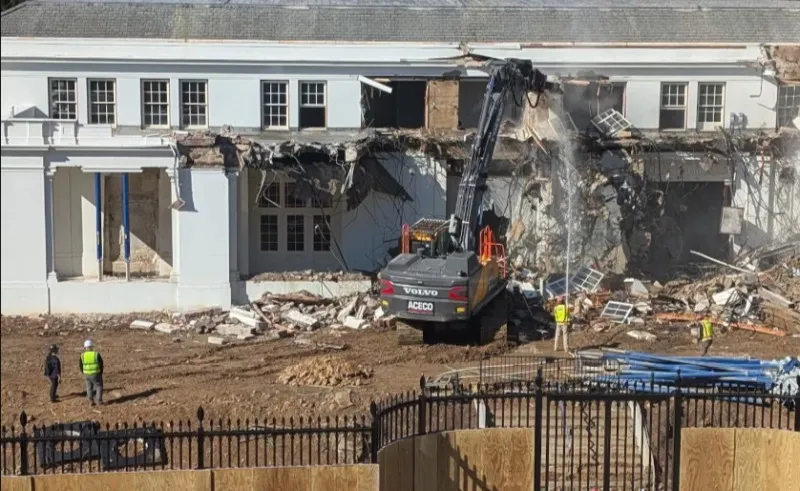 Представитель Белого дома, пожелавший остаться анонимным, чтобы рассказать о строительстве бального зала, подтвердил, что снос Восточного крыла начался в понедельник. По словам представителя, другие части проекта, такие как работы по сохранению объектов, представляющих историческую ценность, ведутся уже несколько недель.