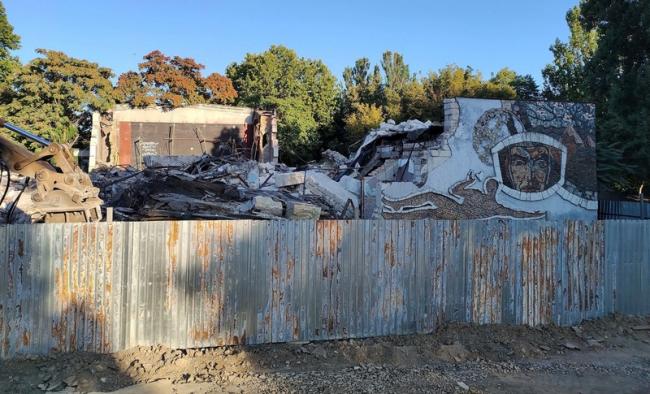 В эти минуты в столице Крыма полным ходом идёт демонтаж здания советского кинотеатра «Космос». Его изюминкой было мозаичное панно, изображавшее завоевание космоса советскими людьми.