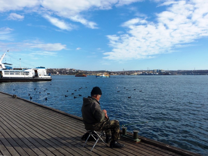 Рыбаки, «выгнанные» ремонтом с «клЁвого места», перешли на Графскую. Говорят – «временно, потом обязательно вернёмся!»