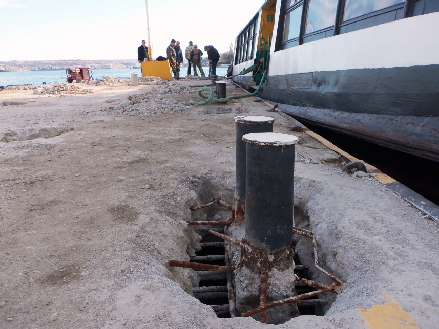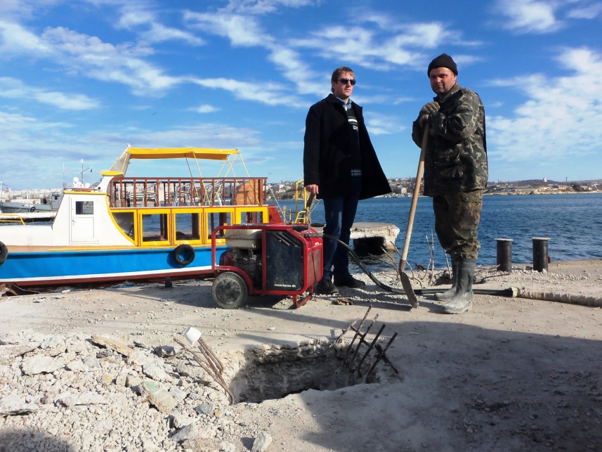 Для заказчика - Севастопольского морского торгового порта – работы выполняет Севастопольское строительное управление АО «Морстрой». Звук отбойных молотков уже месяц разносится над Графской пристанью и далеко по Южной бухте.