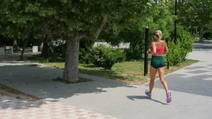 Во время прогулки можно выполнить упражнения с собственным весом: выпады, приседания и прыжки.