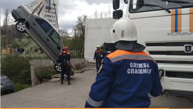 «В 7:55 поступило сообщение об обрушении наружной парковки для автомобилей по адресу пр. Победы, 2-б. К месту были направлены специалисты МЧС, Центра обеспечения мероприятий гражданской защиты, полиции и аварийных служб города. По прибытию была осуществлена эвакуация 2 автомобилей, которые были сверху, далее при помощи крана-манипулятора эвакуировали третий автомобиль, у которого задние колеса находились на обрыве. Сейчас проводятся работы по эвакуации трёх автомобилей, которые попали в зону обрушения», – сообщили в пресс-службе.