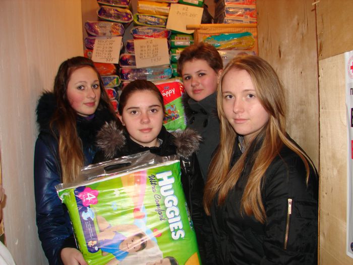 родителями были собраны гигиенические средства : подгузники, детские мыло и шампунь, влажные салфетки на сумму более двух тысяч гривен и в феврале 2012 года доставлены в Дом ребенка.