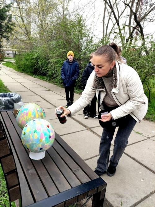 Дома симферопольская затейница развела гипсовый раствор и с помощью шаров и пластиковой бутылки довольно быстро изготовила семь заготовок для будущих пасхальных яиц. А вот процесс раскрашивания решила превратить в досуг для соседей и их детей. Идея всем пришлась по душе.