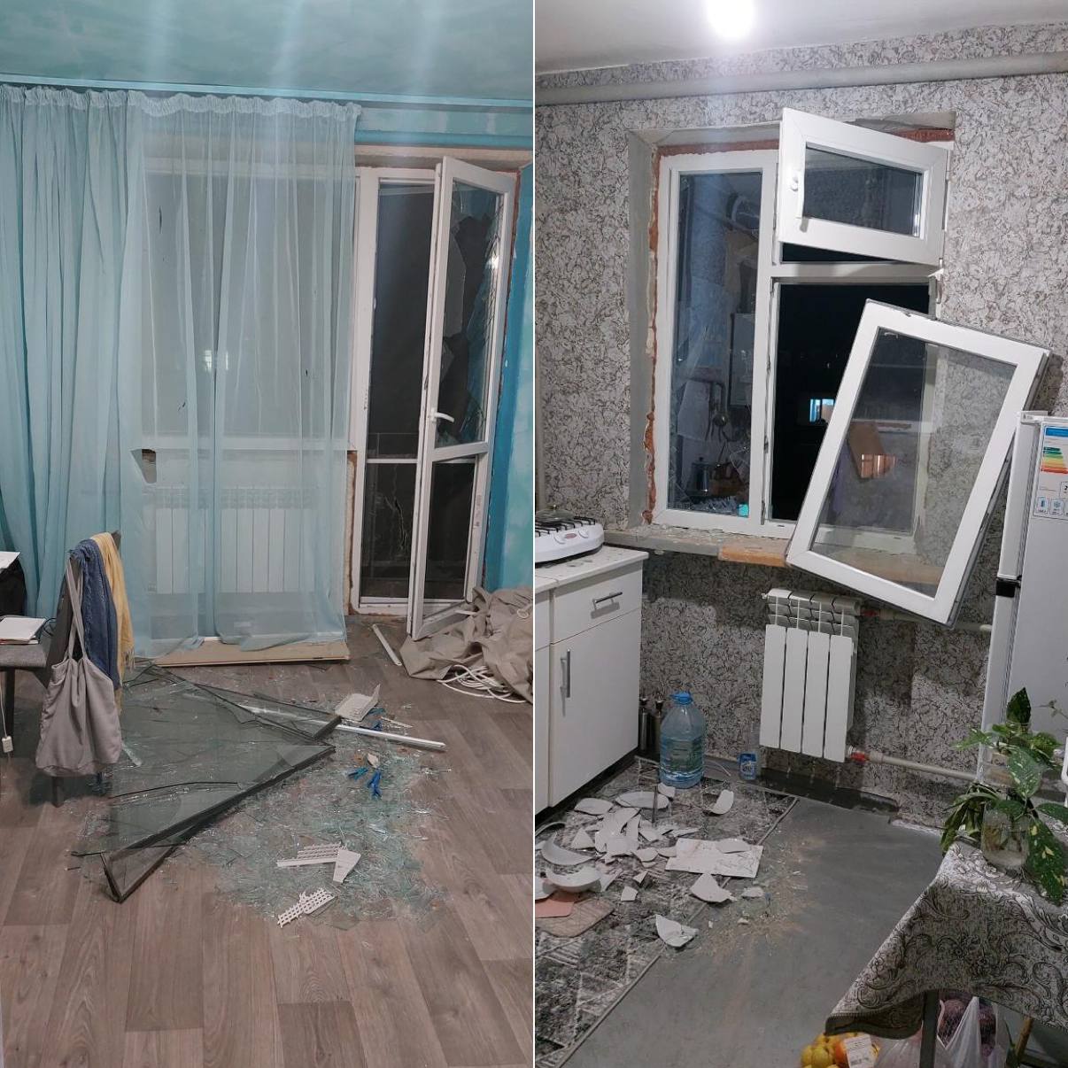 «Я только успела вскочить и забраться на кровать. Небо на секунду стало красным и шарахнуло так, что вылетели окна. Часть балконной двери долетела прямо до кровати», — рассказала Дмитриева.