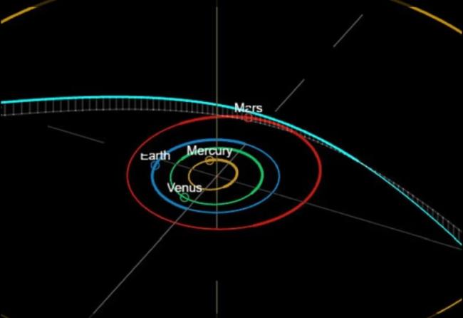Его скорость настолько большая, что он ненадолго задержится в нашей Солнечной системе: он пролетит мимо Солнца и Земли, почти проигнорировав их силу притяжения. Если его траектория не изменится, то в декабре он пролетит в 2,4 астрономических единицах от Земли, то есть приблизительно в 360 миллионах километрах от нашей планеты.
